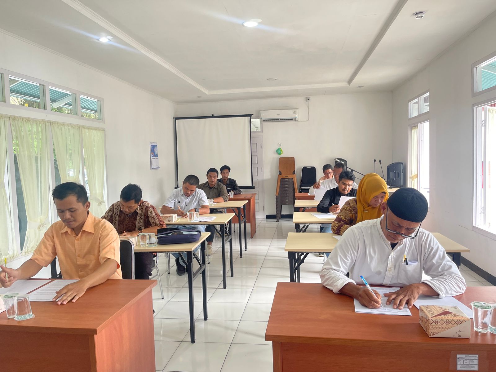 Kota Sawahlunto, Bawaslu Kota Sawahlunto - Berdasarkan Keputusan Ketua Badan Pengawas Pemilihan Umum Nomor : 193/HK.01.01/K1/04/2024 tentang Petunjuk Teknis Penilaian Evaluasi Kinerja Panwaslu Existing Dalam Rangka Rekrutmen Panwaslu Kecamatan Untuk Pemilihan Tahun 2024 maka hari ini dilaksanakan ujian tertulis calon Panwaslu Kecamatan yang digelar di Ruangan Media Center Bawaslu Kota Sawahlunto. Peserta yang mengikuti penilaian sebanyak 10 orang peserta. Evaluasi Panwaslu Kecamatan Existing dilaksanakan dalam rangka persiapan jajaran adhoc pada Pemilihan Kepala Daerah Tahun 2024.