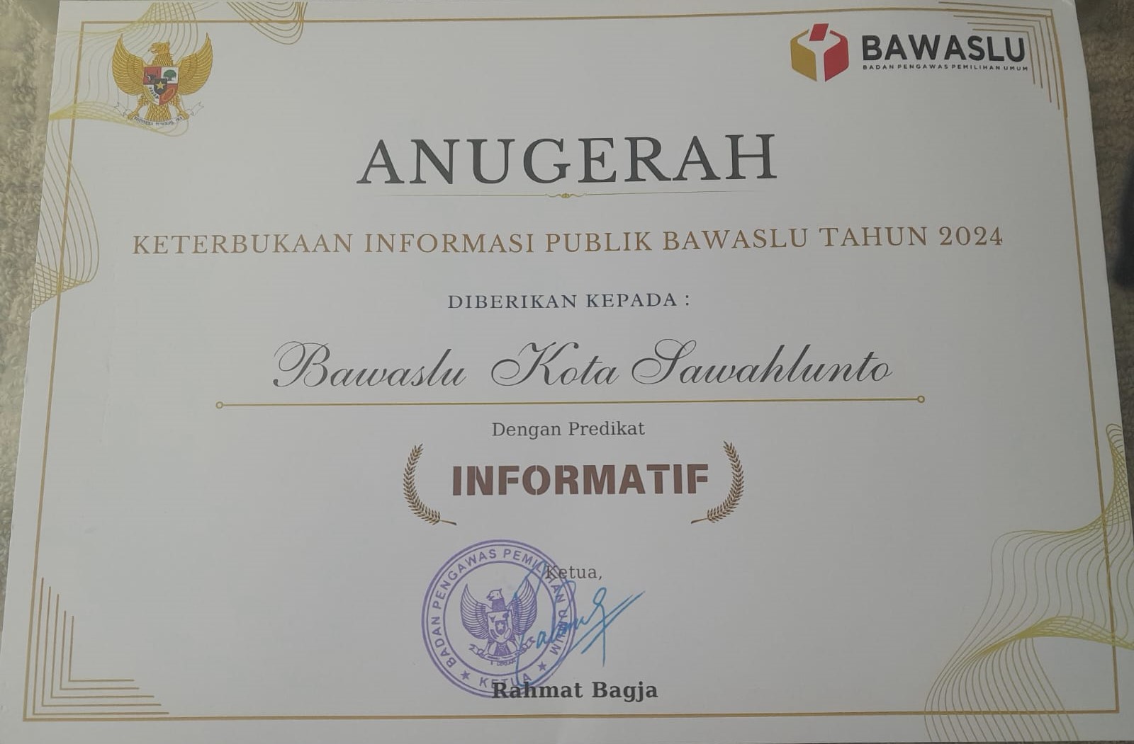Bawaslu Kota Sawahlunto Raih Predikat Informatif Tahun 2024