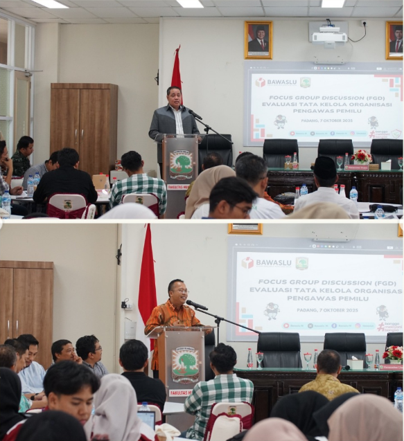 Padang, 7 Oktober 2025 - Badan Pengawas Pemilihan Umum (Bawaslu) Republik Indonesia menyelenggarakan Focus Group Discussion (FGD) bertajuk “Evaluasi Tata Kelola Organisasi dan Sumber Daya Pengawas Pemilu” di Universitas Andalas, Padang, pada Selasa. (7/10/2025).