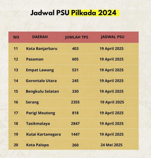 Jadwal PSU Pilkada 2024