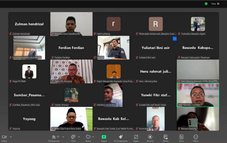 Sawahlunto - Senin 23 Juni 2025 Dalam rangka memastikan Akurasi dan validitas data pemilih. Febriboy Arnendra selaku Koordinator Divisi Hukum, Pencegahan, Partisipasi Masyarakat dan Hubungan Masyarakaat beserta Staf Bawaslu Kota Sawahlunto ikuti Rapat Koordinasi perihal Pemutakhiran Data Pemilih Berkelanjutan yang dilaksanakan oleh Bawaslu Provinsi Sumatera Barat dan diikuti oleh Bawaslu Kab/Kota se-Sumatera Barat.