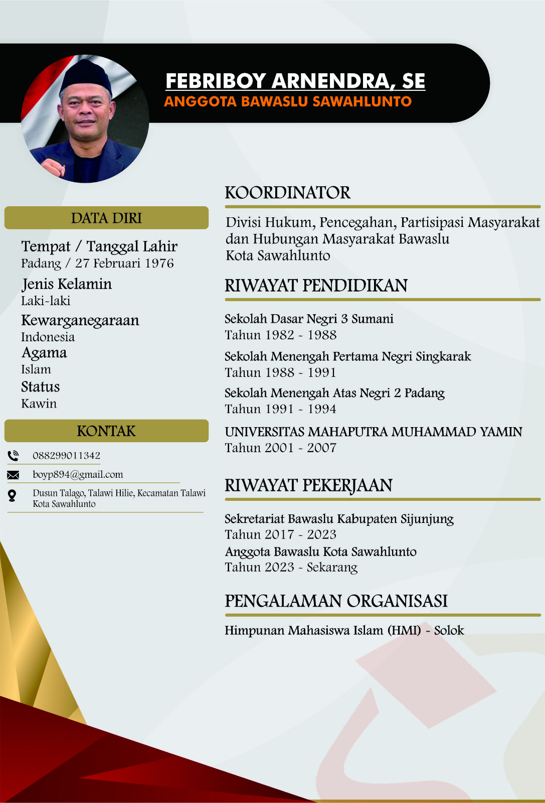 PROFIL PIMPINAN BAWASLU KOTA SAWAHLUNTO